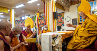 Dharamshala: After several days of incessant rain, this morning the snow-cloaked mountains behind Dharamsala sparkled in the sunlight. Representatives of organisations offering prayers for His Holiness the Dalai Lama’s long life — the Australian Tibetan National Association, Tibetan Communities Europe and the Tibetan Youth Congress — escorted him from the …