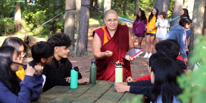 The first session of Camp Tibet was held in the summer of August 2025. On 11 August 2025, 33 campers aged nine to fifteen arrived from seven American states and one Canadian province, ready to leave their cell phones and devices behind, for six days of fun and five nights sleeping under the stars in tents and cabins perched on the shore of a remote island on a lake deep inside the 6 million acre wilderness preserve of the Adirondack mountains in upstate New York. With guidance from experienced programme leaders, such as the founders of Tanager Lodge’s fondly-remembered Tibetan summer camp and Sera Mey’s Geshe Lobsang Dhargey, Camp Tibet’s staff and six Tibetan counsellors led campers through a week of educational and recreational, connection-building and compassion-centred, nature-based programmes.