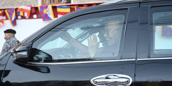 Tibetans, devotees, and well-wishers lined the road from His Holiness’ residence at Tsuglagkhang to Kangra Airport, proffering white scarves, incense, and flowers as they gathered to see Him off.