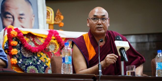 Dharamshala: On 10 September 2025,Speaker Khenpo Sonam Tenphel, alongside Chief Justice Commissioner Yeshi Wangmo and Sikyong Penpa Tsering, addressed Tibetan Youth Tenshug participants at the Sikyong Hall of the Central Tibetan Administration.